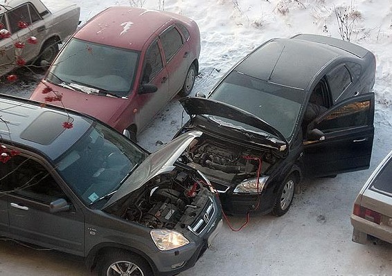 Итак, теплый заряженный аккумулятор ставим на озябшую машину, а ее севший аккумулятор — на прогретую. С теплой батареи исправный автомобиль заведется в любой мороз — оставляем его прогреваться. Севшую батарею ставим на автомобиль-донор и заводим его (предполагается, что батарея разряжена не «в ноль» и на пуск прогретого мотора ее хватит). Дальше сидим, курим и ждем, пока холодный автомобиль прогреется, а севший аккумулятор чуть подзарядится, для чего лучше держать обороты повыше — около 2000. Минут через десять глушим обе машины и меняем АКБ обратно. Теперь прогретая машина должна легко завестись с подзаряженного аккумулятора и вы можете принять благодарности от спасенного коллеги и спокойно разъехаться по своим делам. Этот метод довольно хлопотный (откручивать крепления батарей, таскать тяжелые аккумуляторы…), но зато и надежный. Кроме того, он не требует наличия сторонних девайсов — проводов прикуривания.