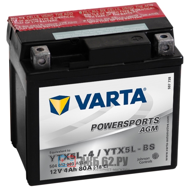 Производитель: VARTA (Германия)Модель: VARTA 4Ah AGM POWERSPORTS YTX5L-4 YTX5L-BS