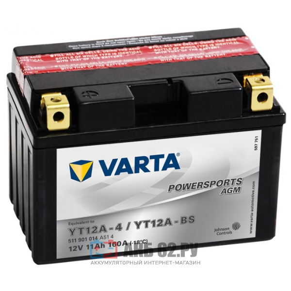 Производитель: VARTA (Германия)Модель: VARTA 11Ah AGM POWERSPORTS YT12-A4 YT12A-BS