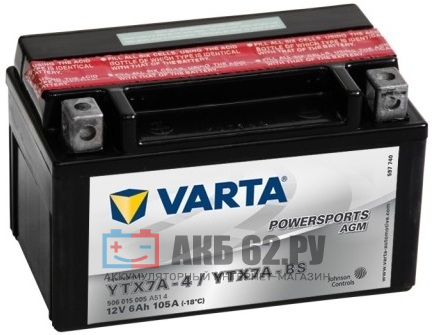 Производитель: VARTA (Германия)Модель: VARTA 6Ah AGM POWERSPORTS YTX7A-BS
